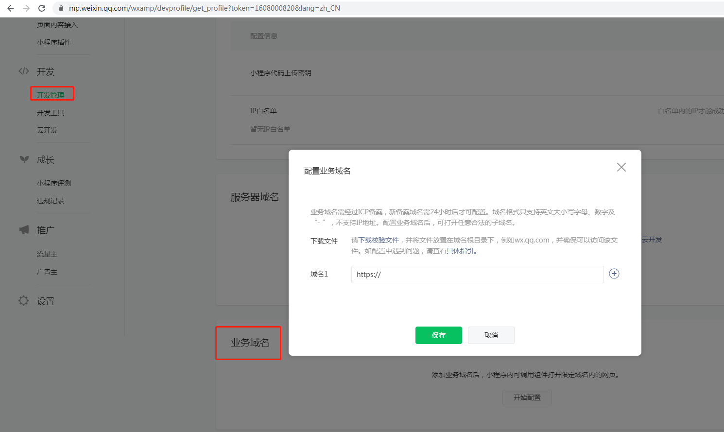 ①非业务域名,如下图所示,未配置业务域名,或者业务域名校验不通过。