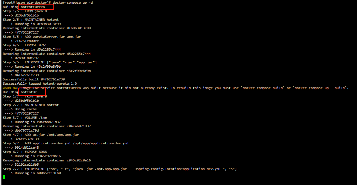docker-compose build --no-cache hotentUc 不带缓存的构建。