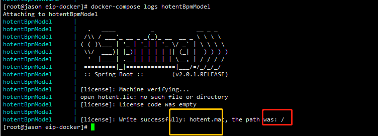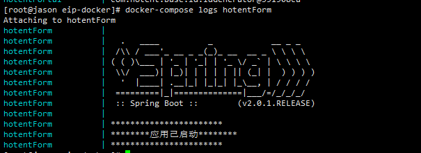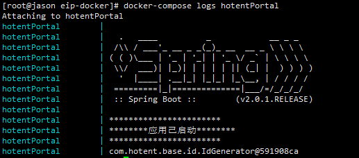 可以通过docker-compose logs hotentBpmModel查看日志内容如下图: