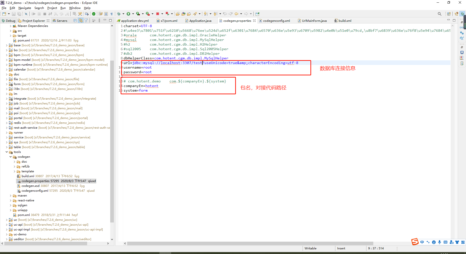 配置数据库连接池,连接数据库,指定包名