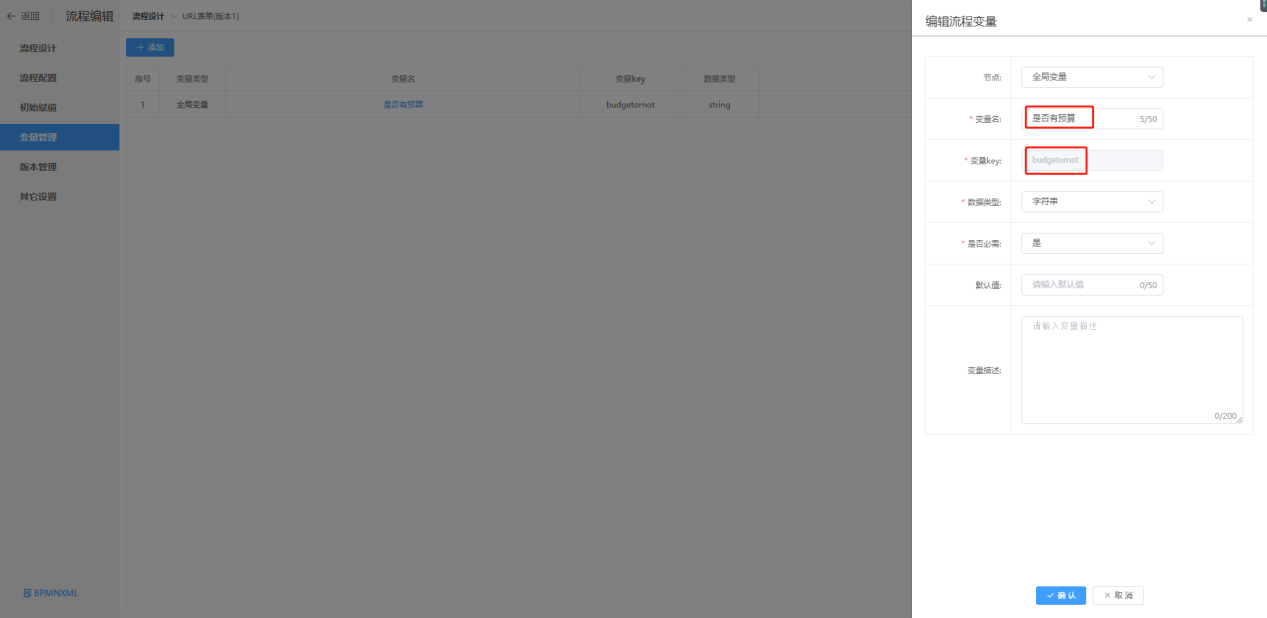 此budgetornot对应vue表单文件中传入的param中的值