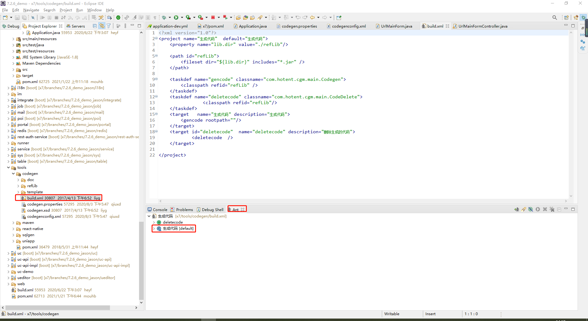 3、使用ant脚本自动生成代码
