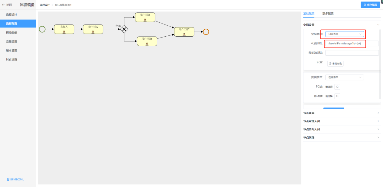 2、全局配置中配置url表单,url地址配置添加的vue表单地址