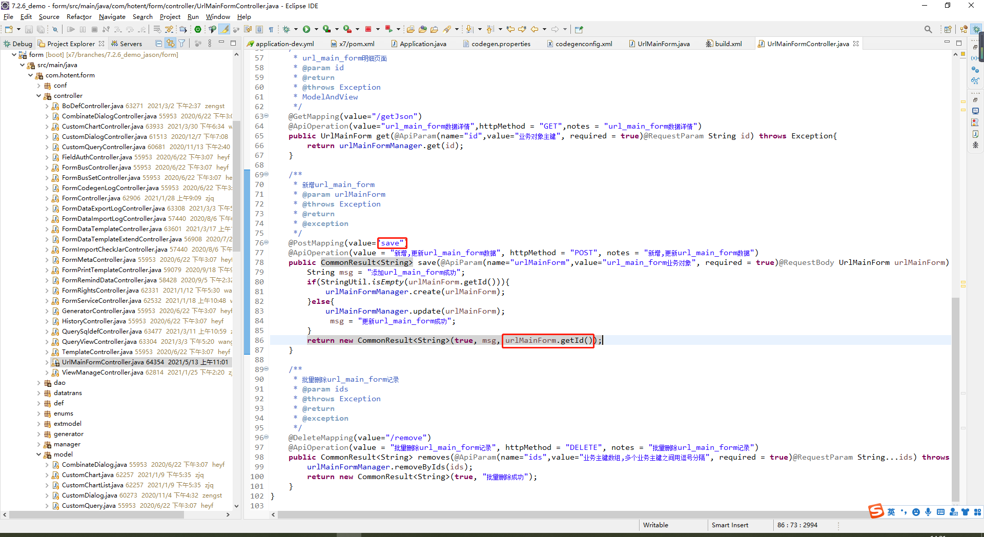 4、在生成的controller中,修改save保存方法,返回id给前端