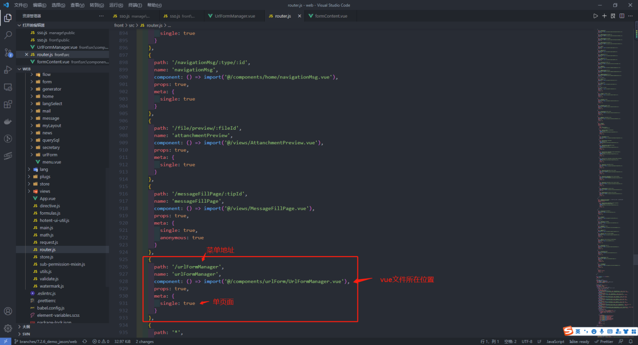5、在router.js中配置url表单文件的菜单地址