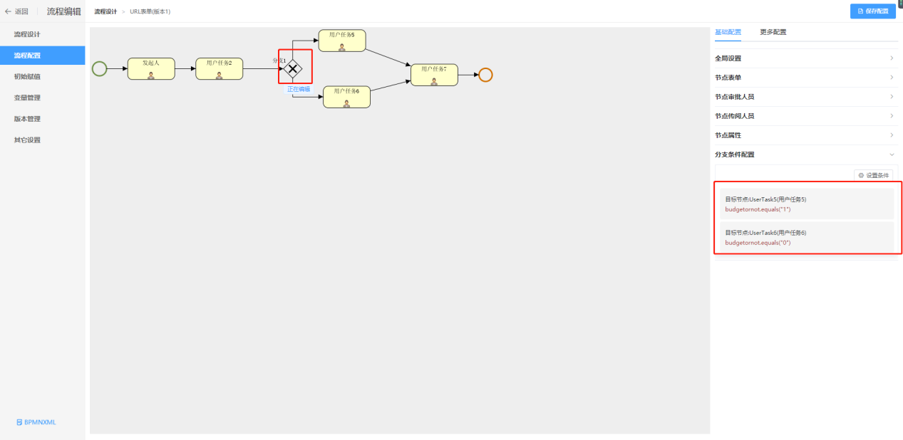 4、配置分支条件