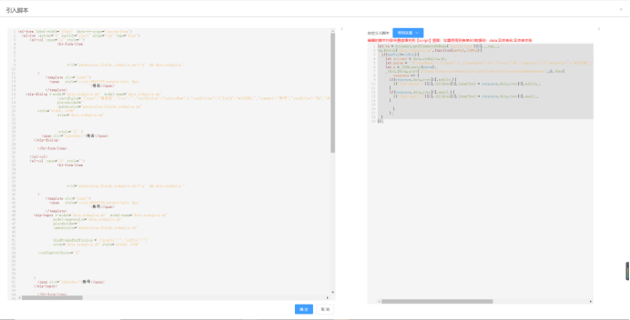 第二步:在表单编辑页面点击按钮“引入脚本”,填写以下内容: