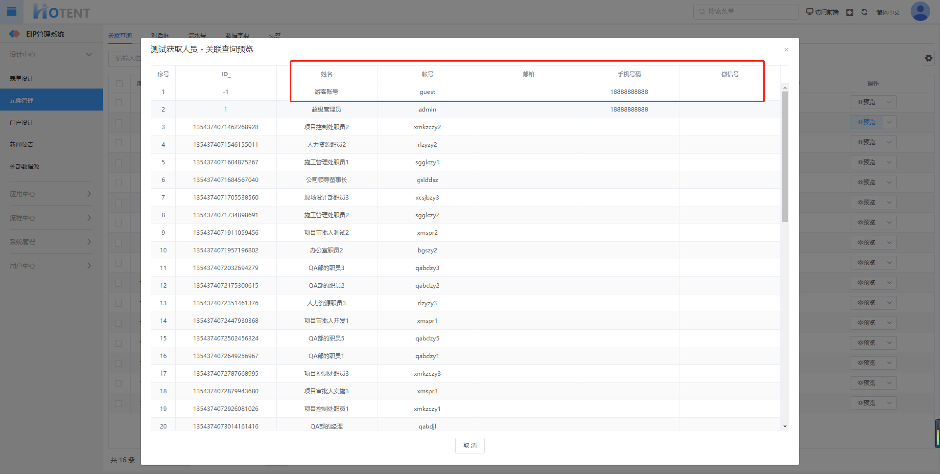 效果:调用关联查询接口,查询数据第一行回填至表单指定字段