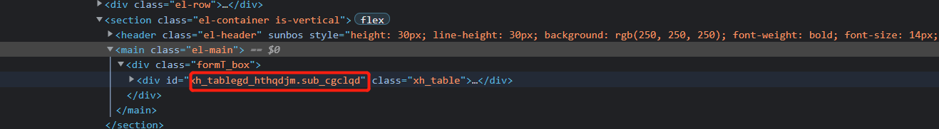 id处填写对应的子表id,需要在页面元素中找到子表id