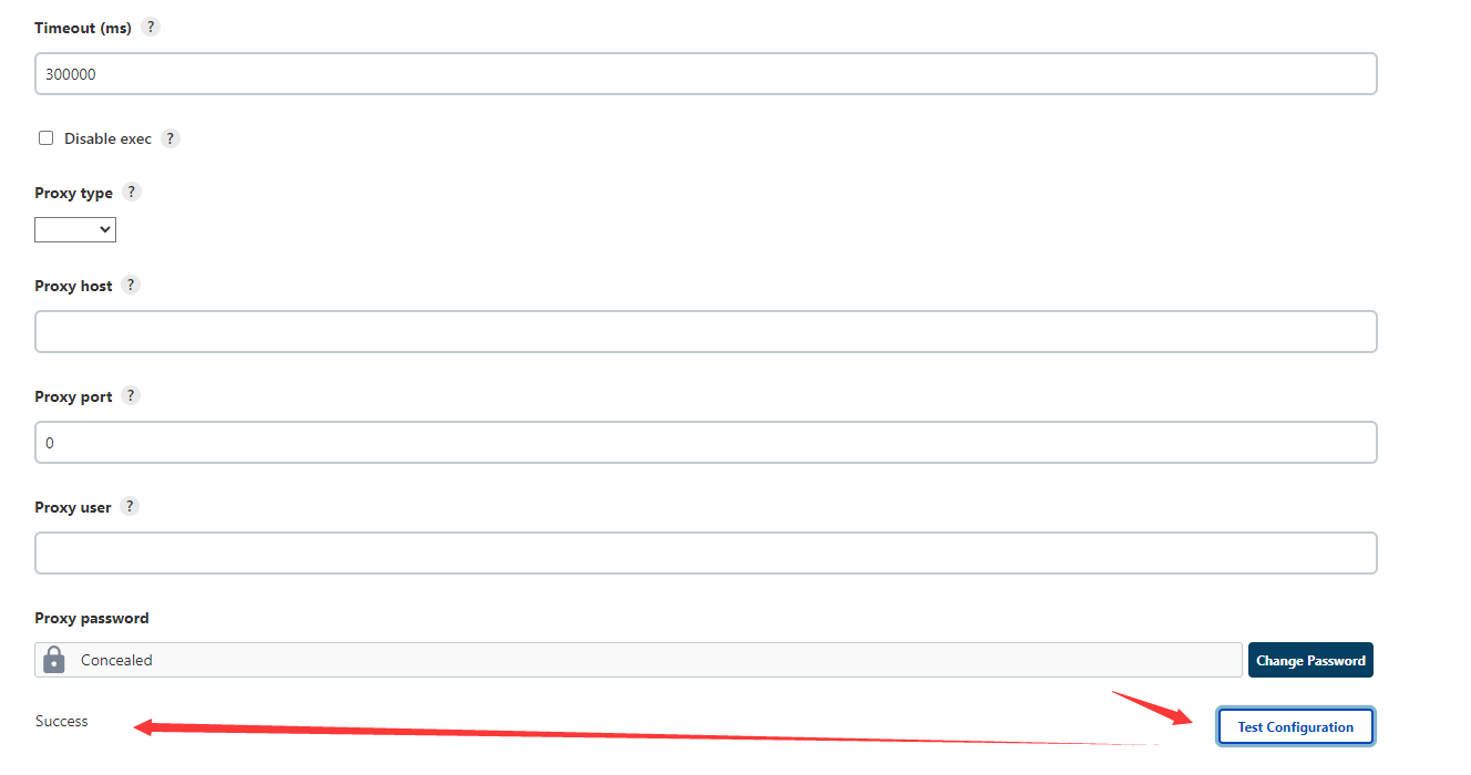 信息配置后点击Test Configuration按钮,当出现Success时表明连接成功,可以进行部署