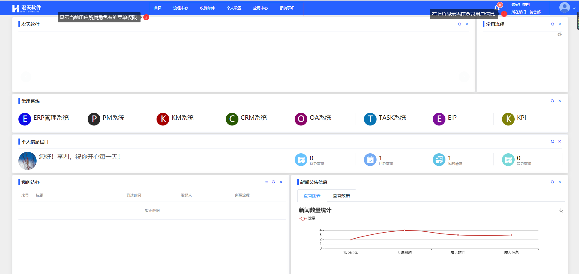 授权成功后,用户登录系统前台,可在首页的【流程中心】->【新建流程】中,发起流程。