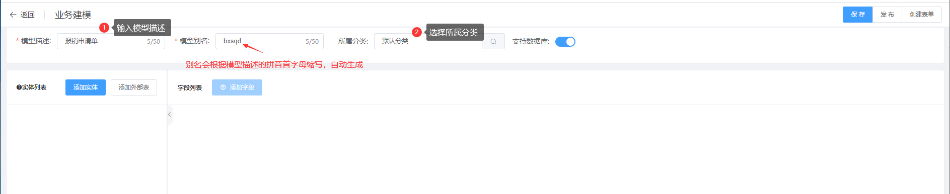 第二步:在新增建模页面填写相应的模型信息;