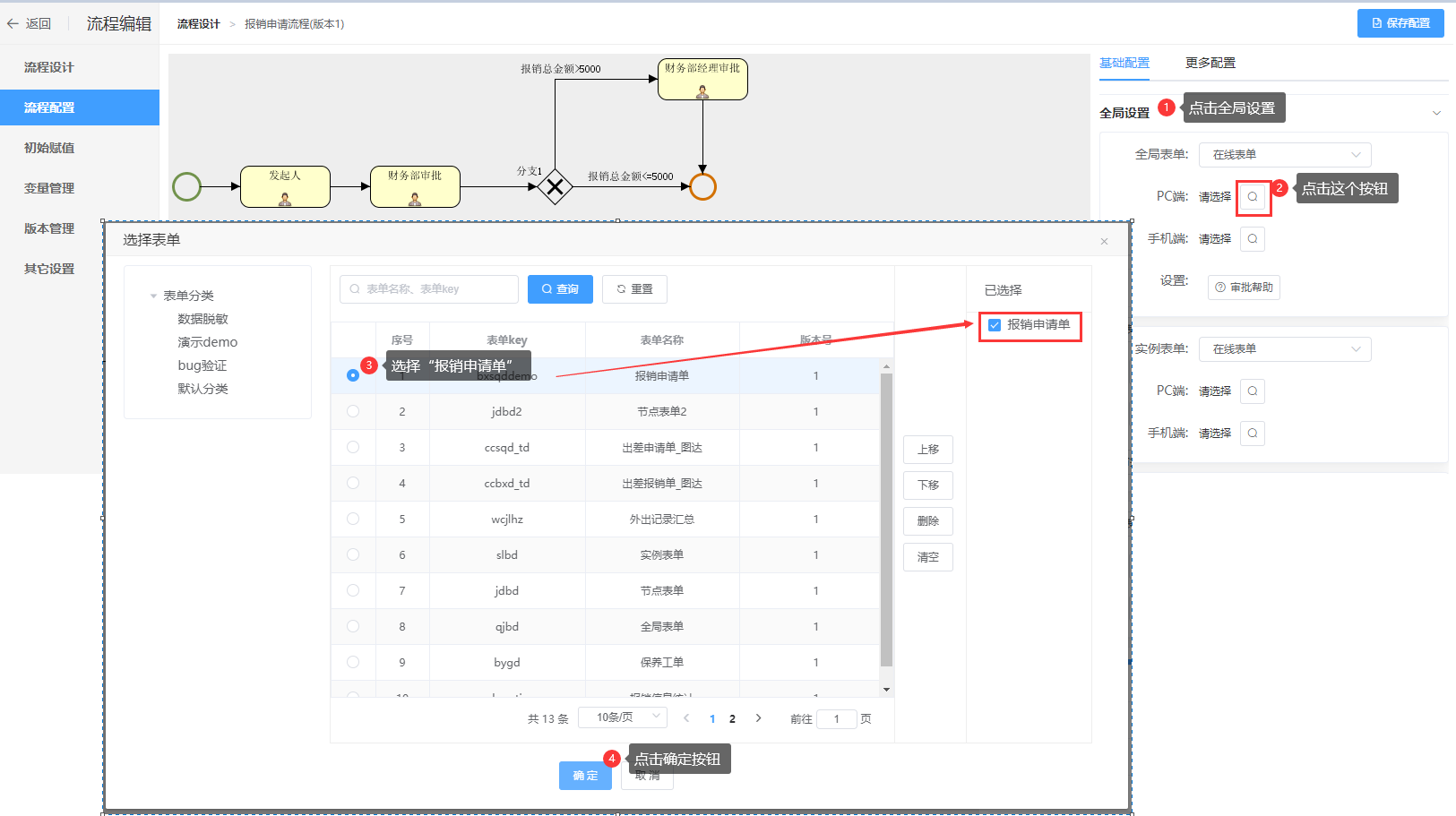 第二步:绑定全局表单:报销申请单